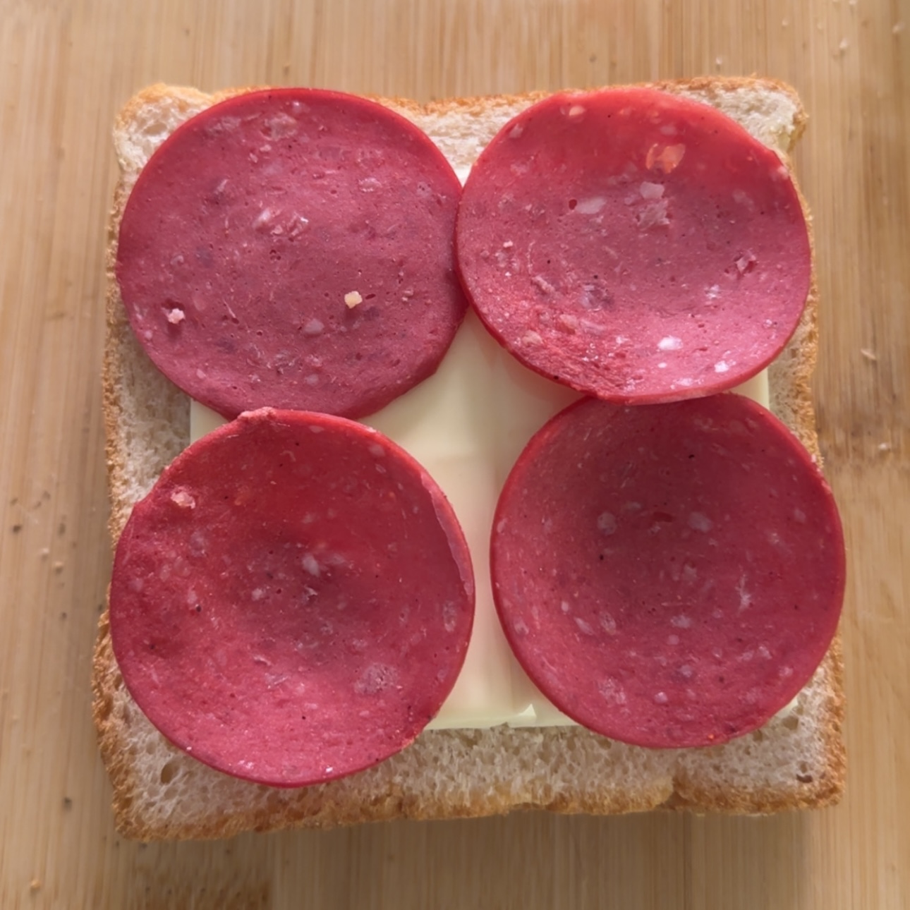 Tambahkan pepperoni (sebelum digunakan, masukkan ke dalam microwave selama 30 detik).